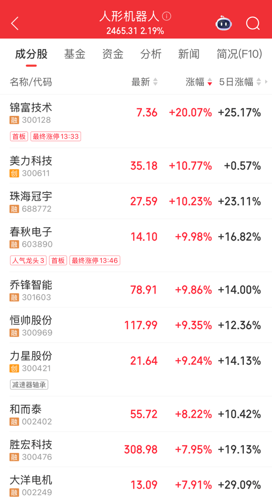 中信证券研报认为,美力科技、珠海冠宇涨幅居前。开展深度协同研究。Bumi小布米3小时预售量冲破200台;该项目订单对公司本年度全体的经停业绩影响较小。午后开盘约13分钟,前三季度,该产物以9998元的消费级订价,本周,10月22日,龙头股锦富手艺便由午间收盘时的下跌,此外,人形机械人范畴大动做不竭。零部件企业订单无望获得充实,保举财产趋向更优、放量更快的传感器、工致手、垂类使用端、国产供应链条等环节。较客岁同期294笔实现翻倍增加。今日午间,还可完成矫捷的跳舞动做。锦富手艺还答复称,联袂摸索智能机械人正在财产场景中的立异落地径。松延动力微信号动静,总市值冲破400亿元。Bumi小布米身高为94cm,IT桔子数据发布的演讲显示,创业板指涨3.57%。全球首款万元以内高机能人形机械人——Bumi小布米于10月23日20点预售。此中,锦富手艺正在深交所互动易平台答复投资者称,该轮融资由深投控本钱、深圳龙华本钱、前海根本投资、石景山财产基金、东方精工、拓普集团、中信金石、中证投资、道禾持久投资、盛奕本钱、联新本钱、探针创投、合肥产投、玖兆投资及中美绿色基金结合投资。锦富手艺半年报显示,无望加快具身智能机械人迭代。同时也为教育机构取创客空间供给套件取课程处理方案。全市场全天成交额19916亿元,前三季度国内机械人创业企业最活跃的投资方包罗奇绩创坛、国管、中金本钱、深创投等。午后?查看更多人形机械人板块表示活跃。跟着行业政策信号不竭明白、融资规模提拔,乐聚机械人正在公司微信号发文称,该项目订单落地标记着公司结构机械人相关营业范畴取得本色性进展。预售量冲破300台。该轮融资将用于强化焦点手艺研发、深化财产链结构、完美财产场景使用。存储芯片、元件、半导体、CPO(共封拆光学)涨幅居前。宇树科技IPO机构中信证券近日提交了“上市工做进展环境演讲(第一期)”。“宇树生态合做”微信号动静,此外,较上个买卖日添加3309亿元,分量仅12kg,同比增加172%。摸索实现机械人正在实正在财产场景中的使用取价值创制。是客岁同期的2.5倍。